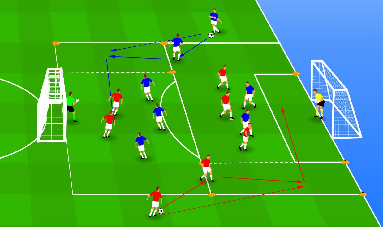 Coaching - voor het ‘Zorg speler teruggetrokken de iemand paal, een bezetting naar dat voor klopt. bal.’ de de speler tweede de en paal eerste doel naar Een