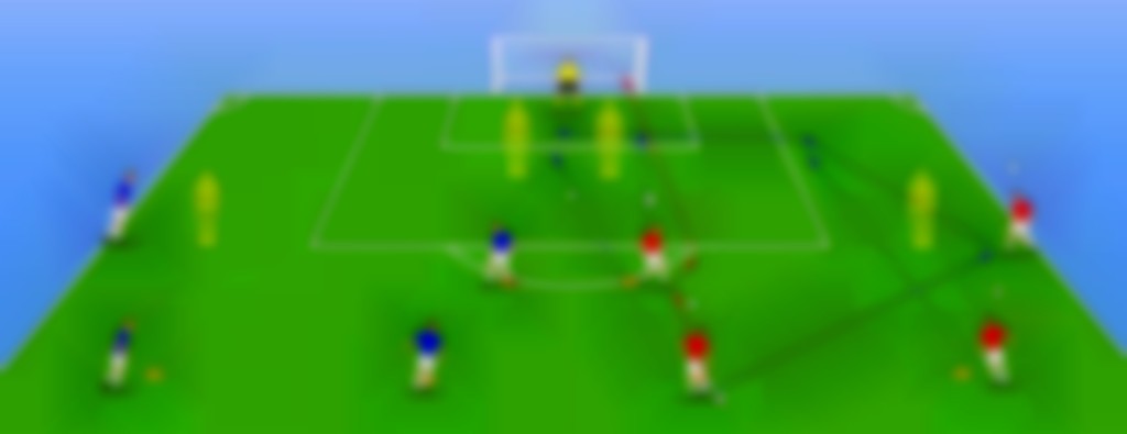- met D voor, C Speler kiezen C. voor speelt D het Speler doel B speler geeft vervolgens de bal spelers positie A (blauwe in. A mee Speler en pijl). Speler geeft