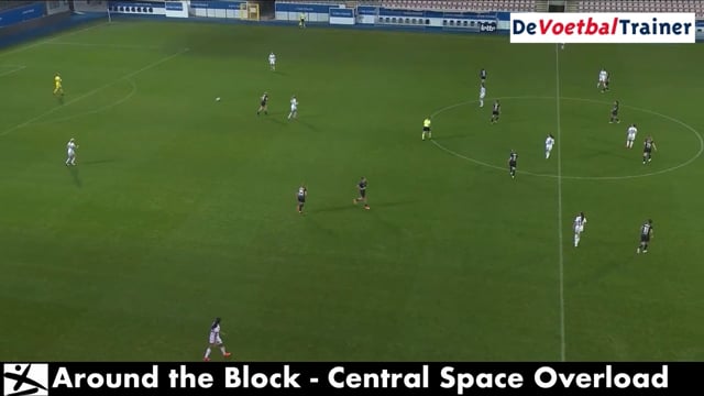 Arno Van den Abbeel: ‘‘Verder is het heel belangrijk, wanneer we opbouwen met drie speelsters, dat onze 3 of onze 4 hoog genoeg durft staan, zodat zij de eerste lijn van drukzetters van de tegenstander kunnen uitschakelen door middel van goed positiespel gevolgd door een goede pass en aanname. Daarna wil ik dat ze hun tegenstander opzoeken. We noemen dat de ‘centerback challenge’. Zo maken we aan die kant altijd een situatie dat de buitenspeelster of middenveldster van de tegenstander een keuze moet maken. Je krijgt een 2:1 of 3:2 en een kettingreactie aan keuzes bij de tegenstander.
