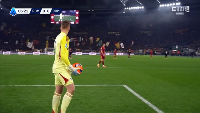 In deze video is te zien hoe het Como onder trainer Cesc Fàbregas opbouwt vanuit een doeltrap tegen mandekking. De controlerende middenvelder zakt uit tot naast de keeper. Hij krijgt de bal en speelt deze naar de rechter centrale verdediger. Vervolgens beweegt hij het middenveld in, waardoor een 2:1-situatie ontstaat met de keeper en de rechter centrale verdediger. Op die manier lukt het Como om onder de druk van AS Roma uit te spelen.